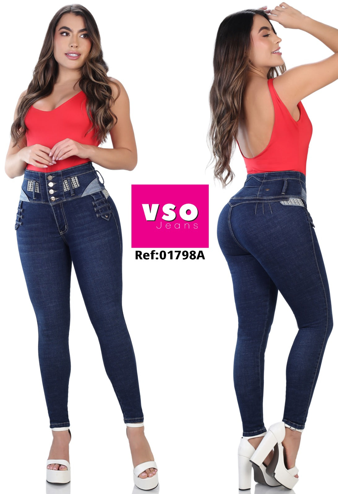 Jeans con tecnología levanta cola y control de abdomen, se ajusta y realza la silueta; originales 100% Colombianos.