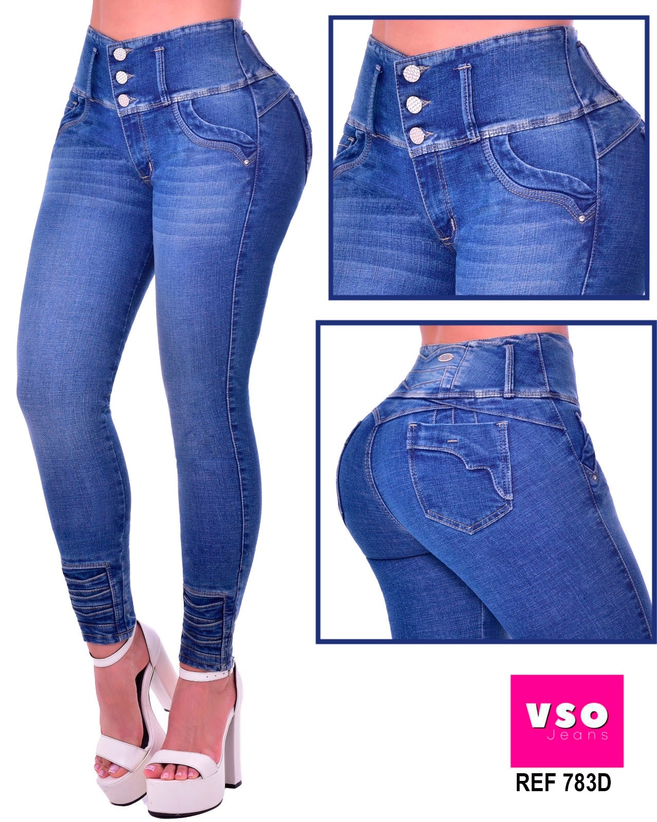 Jeans con tecnología levanta cola y control de abdomen, se ajusta y realza la silueta; originales 100% Colombianos.