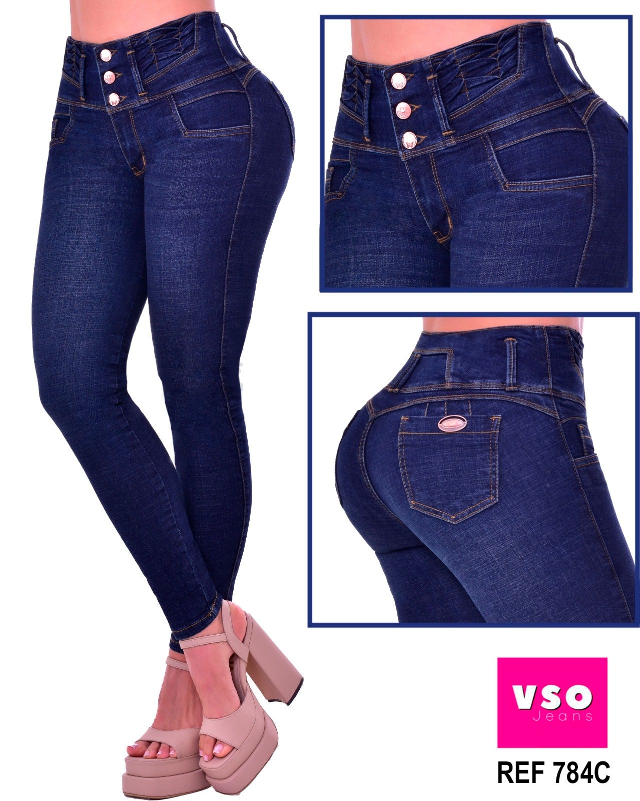 Jeans con tecnología levanta cola y control de abdomen, se ajusta y realza la silueta; originales 100% Colombianos.