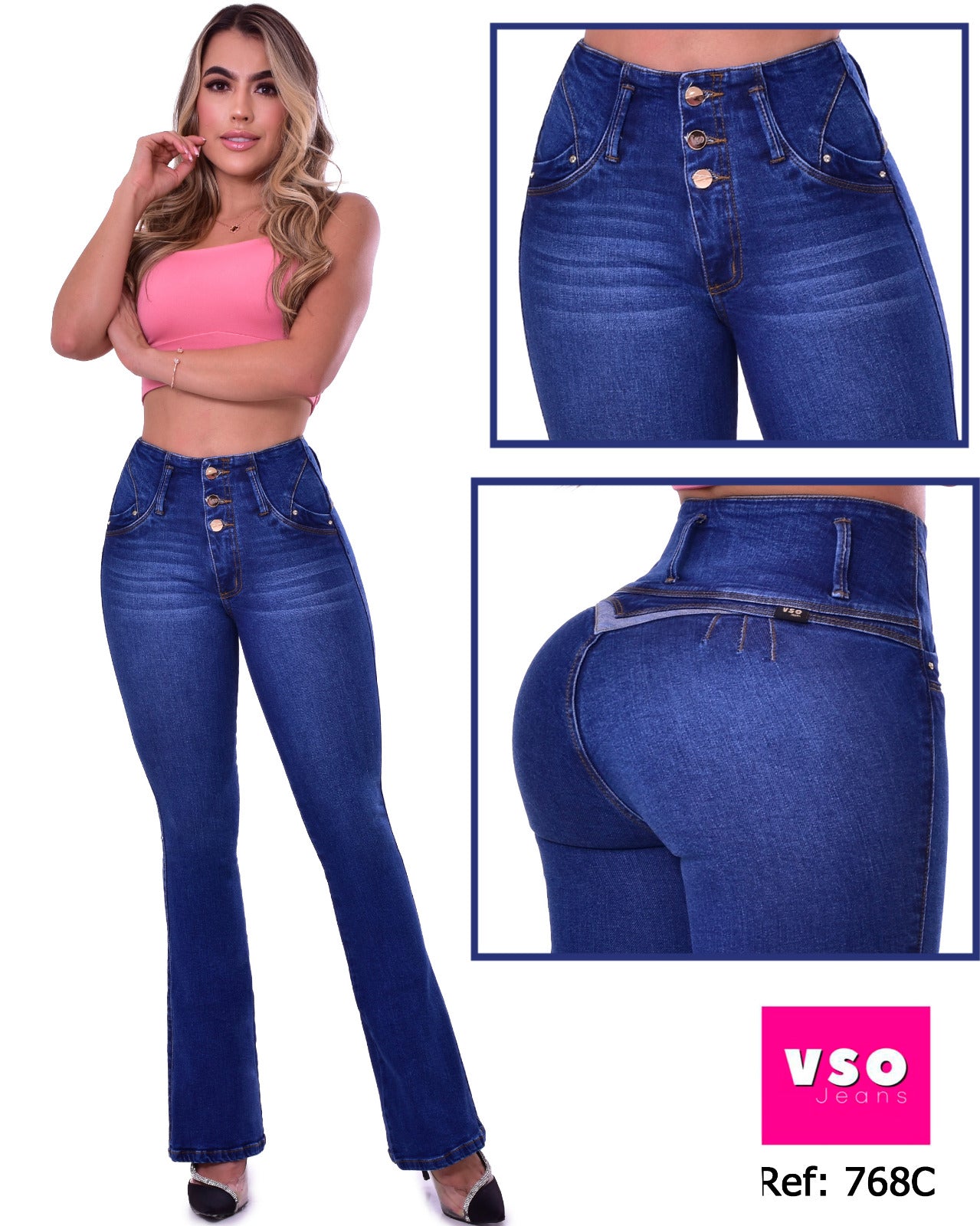 Jeans con tecnología levanta cola y control de abdomen, se ajusta y realza la silueta; originales 100% Colombianos.
